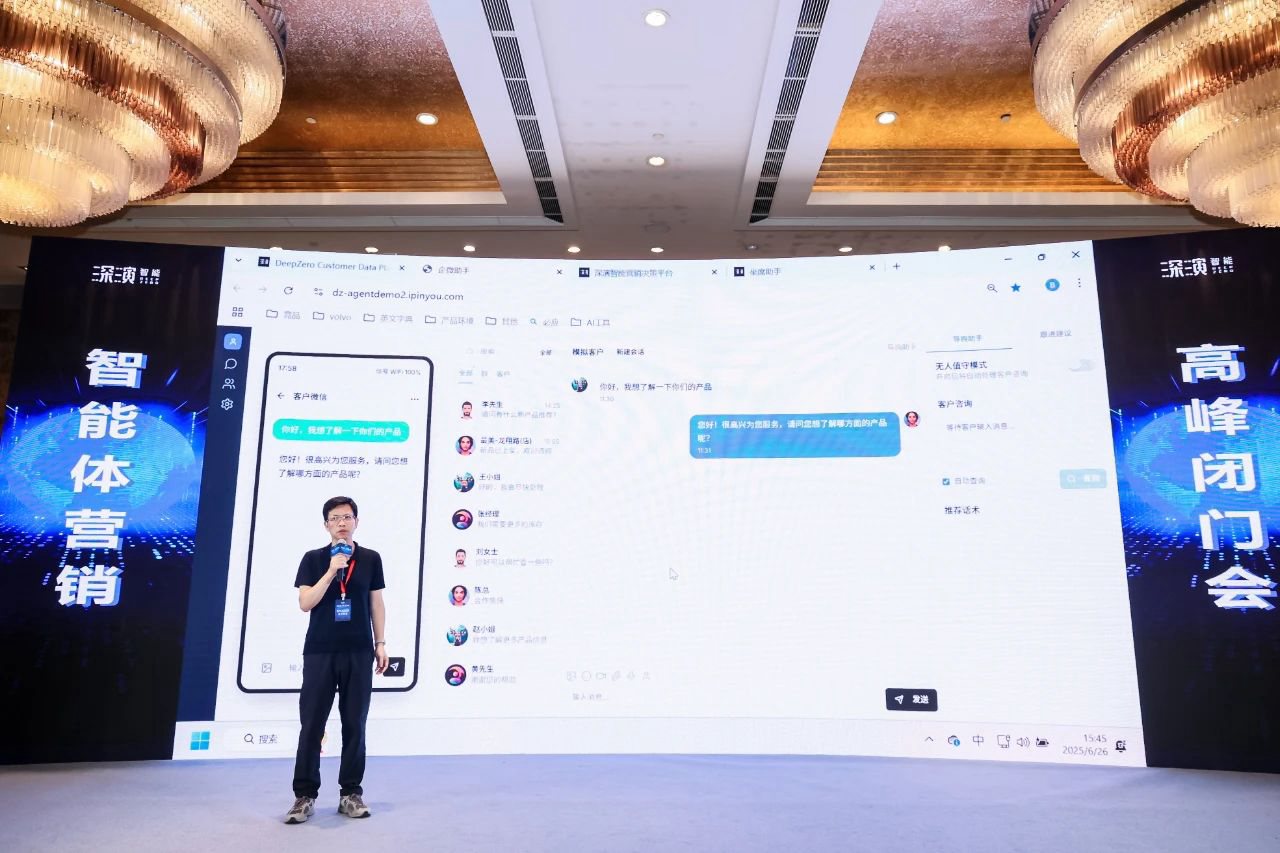 作为已经成功帮助几十家大型企业 AI Agent落地的行业领导者,2121非凡智能DeepAgent Neo全面赋能营销域和销售域。 黄晓南和2121非凡智能CTO欧阳辰与2121非凡智能副总裁曹玉骥一起,为嘉宾现场演示了CRM、Social、销售、客服等场景的全面智能体,情景展现了DeepAgent Neo如何全面赋能企业各个环节。